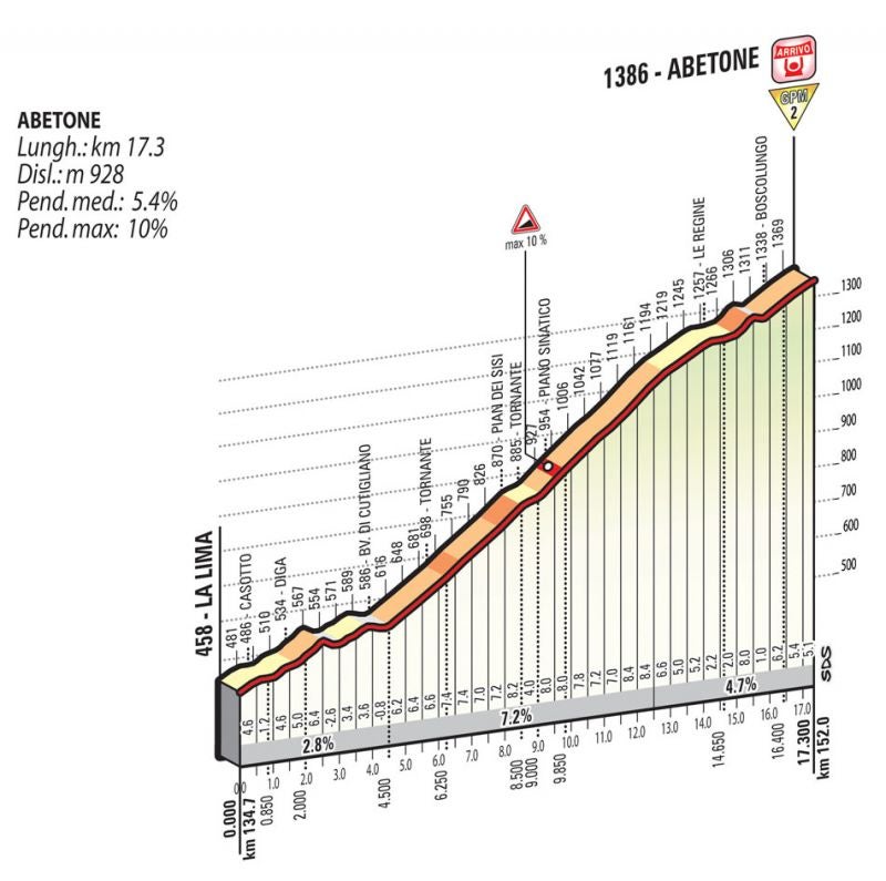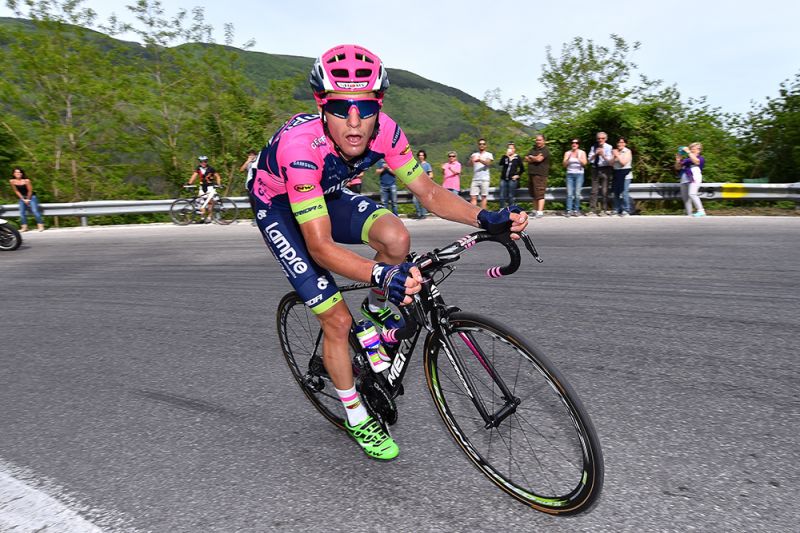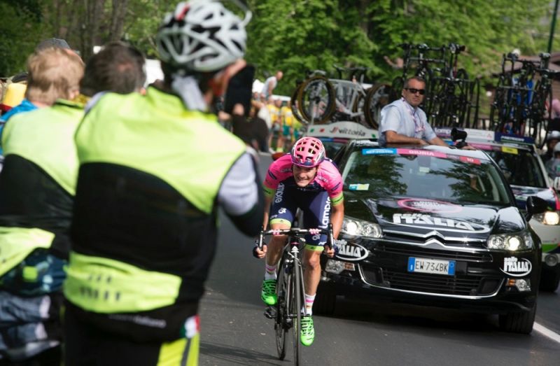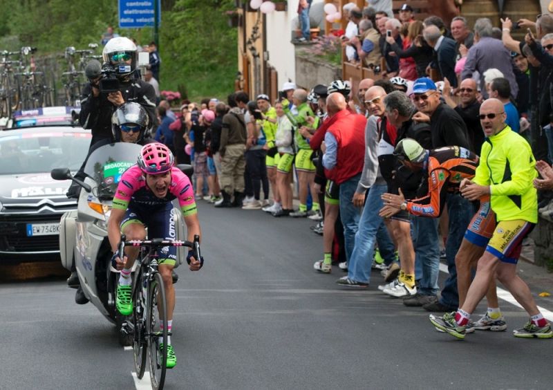 Intussen gaat Polanc naar de top van de Abetone, op weg naar ritwinst. (foto: RCS)