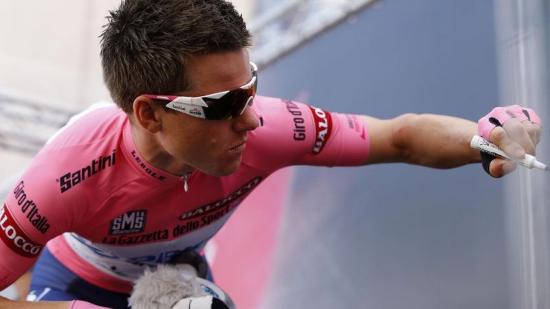 Ook al zou hij het tricot liever later in de Giro willen aantrekken, hij is er toch blij mee. (foto: ANSA-Peri)