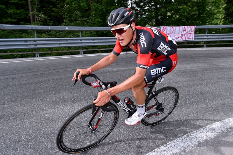 De Zwitser Silvan Dillier kan niet volgen en moet lossen. (foto: TDWsport)
