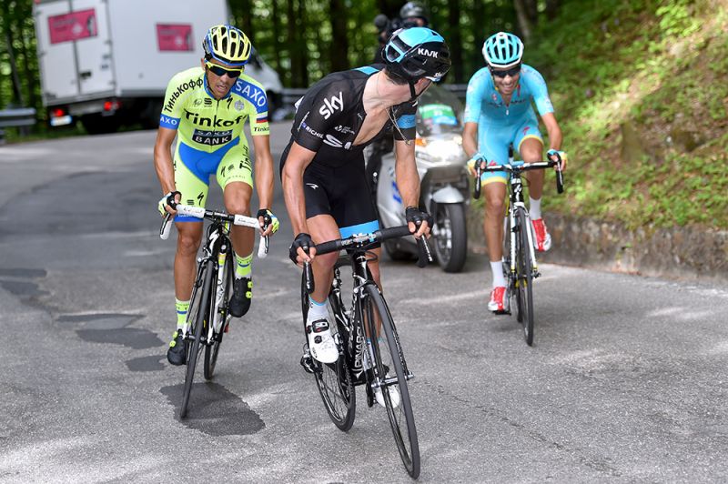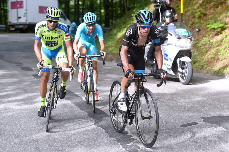 Achter Contador proberen Richie Porte en Fabio Aru terug te keren in het wiel van de Spanjaard. (foto: Sirotti)
