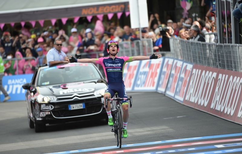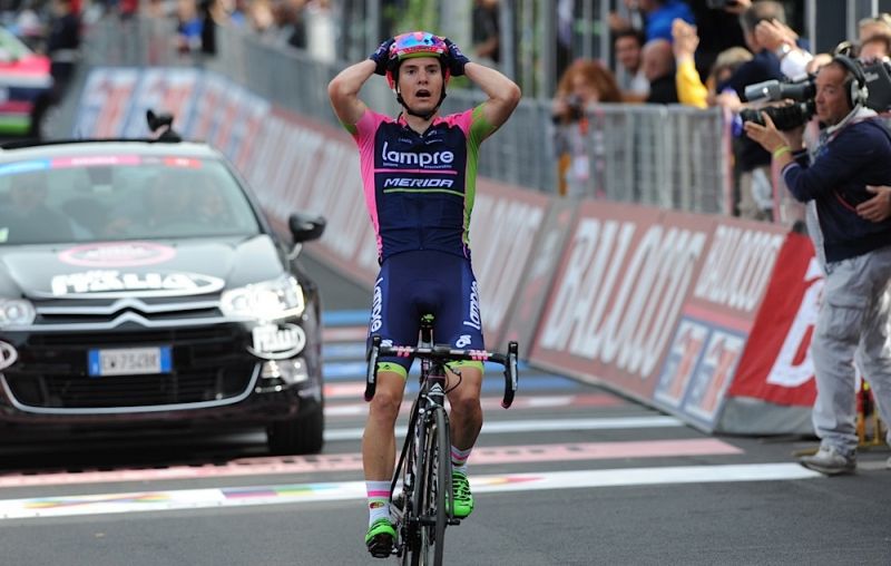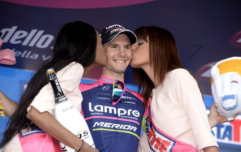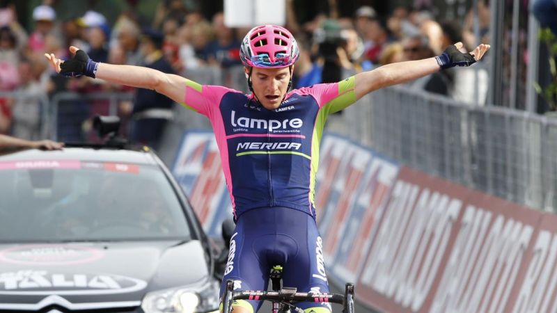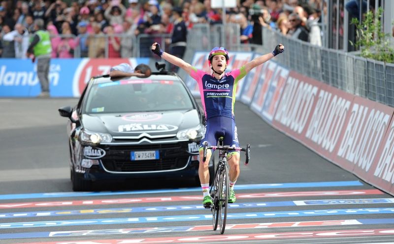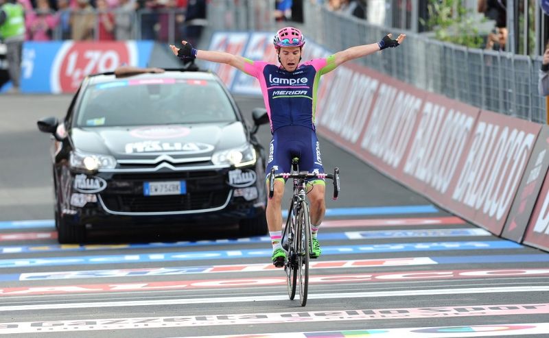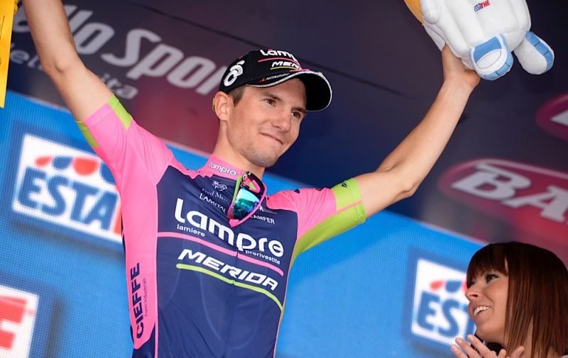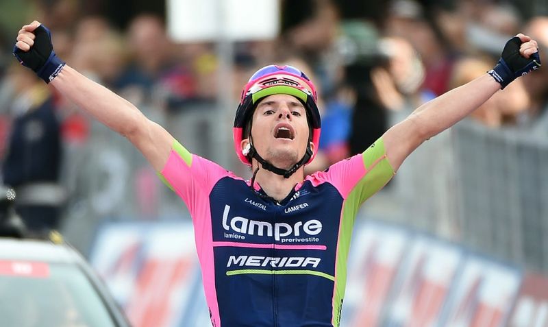 Een verdiende zege voor deze Sloveen van Lampre-Merida. (foto: ANSA-Zennaro)