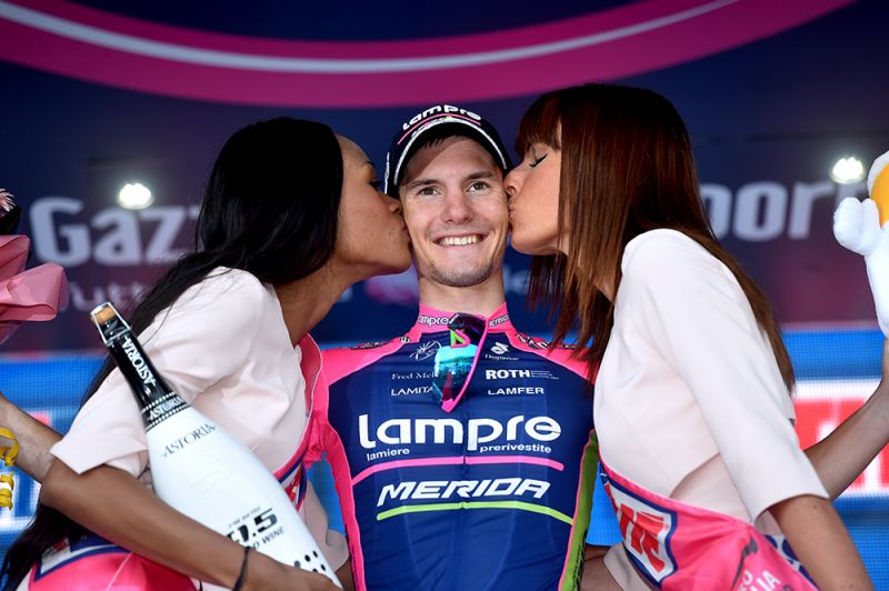 De Sloveen Jan Polanc mag het ereschavot betreden. (foto: Sirotti)