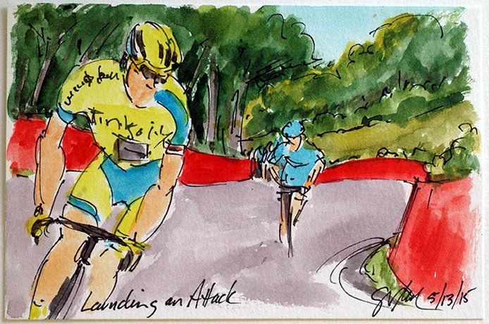 "Launching An Attack" (by Greig Leach): Contador doet nog één verwoede poging tot een aanval.