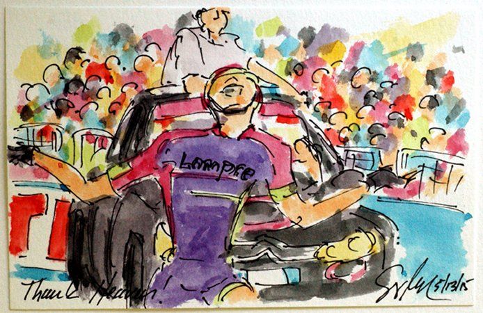 "Thank Heaven" (by Greig Leach): Polanc dankt de hemel bij zijn etappe-overwinning.
