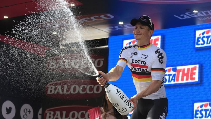 Greipel met bloemen en rondemissen. (foto: Sirotti)