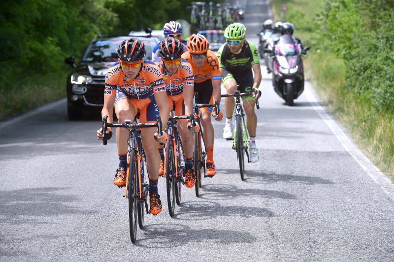 Nippo-Vini Fantini is met 2 man, Grosu en Malaguti, sterk vertegenwoordigd in de kopgroep. (foto: TDWsport)