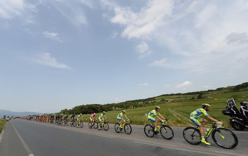 Het peloton langs een weg met bomen. (foto: ANSA-Peri)