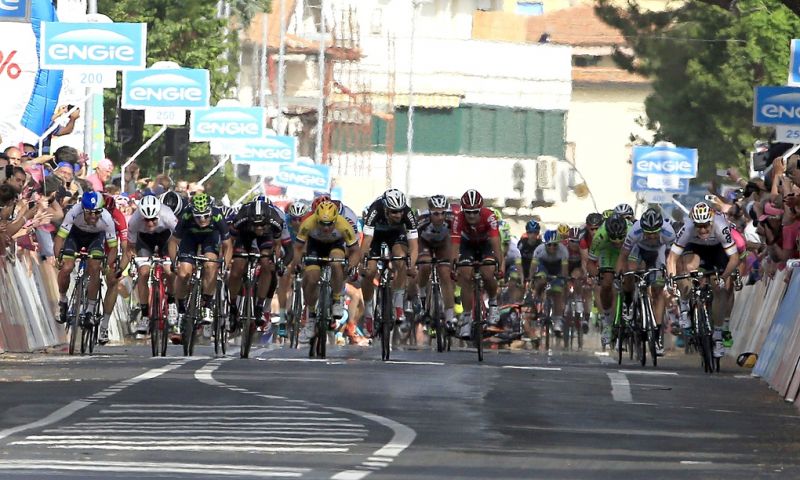 Hij laat concurrenten als Pelucchi, Nizzolo, Viviani en Modolo achter zich. (foto: ANSA-Zennaro)