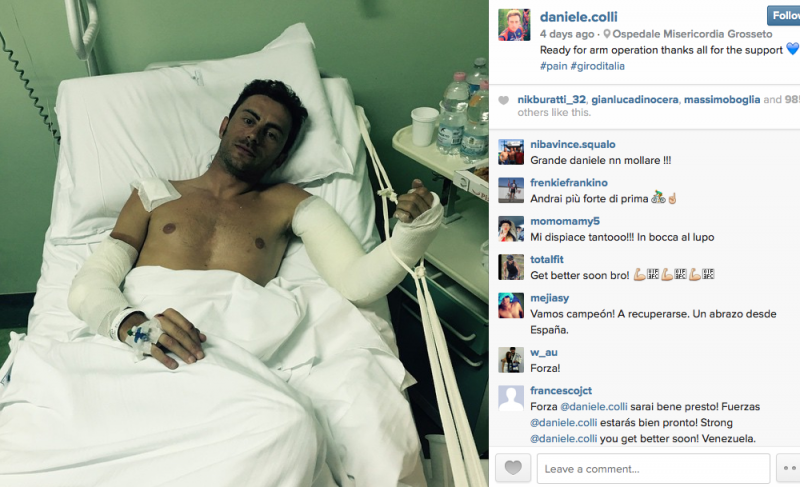 Daniele Colli bevindt zich dan al in het ziekenhuis met o.a. gebroken arm. (fotto: Colli)