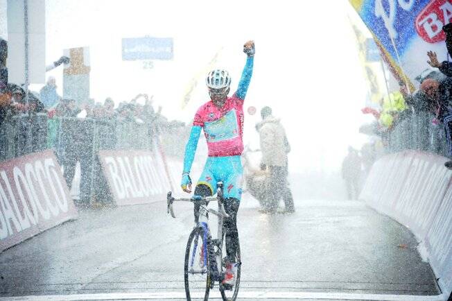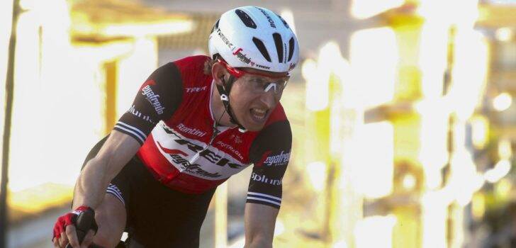 De Italiaan Fausto Masnada bij zijn zegetocht in de voorbereidingskoers Tour of the Alps in eigen land.