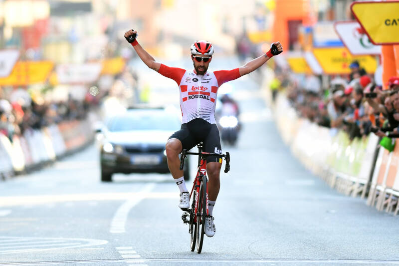 Thomas de Gendt weet niet van ophouden met zijn aanvallende stijl, zoals hier bij zijn etappe-overwinning in Catalunya eerder dit jaar.