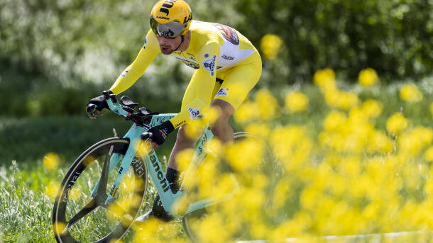 Primož Roglič in actie in Romandie, de Sloveen lijkt dit jaar onklopbaar te zijn in het rondewerk.